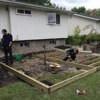 Saturday brought clouds but temperatures that were just about perfect for deck building. Bernie took on the role of foreman and I took on the role of, ummm, uh, well I was there! Guess I made lunch and supper - so there was that on top of the other physical labour I did. (Yes. Dexter. I did physical labour too!)